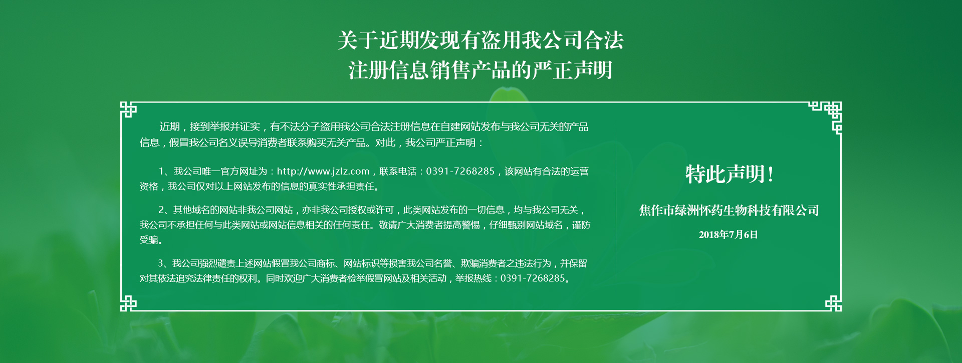 焦作市綠洲懷藥生物科技有限公司是一家以生態(tài)農(nóng)業(yè)、生物工程為主產(chǎn)業(yè),集科研、工貿(mào)于一體的高科技企業(yè),被省、市、縣科技、財(cái)政、農(nóng)業(yè)、技術(shù)監(jiān)督部門列為扶持發(fā)展企業(yè),是市、縣級(jí)保護(hù)企業(yè)和“中藥現(xiàn)代化科技產(chǎn)業(yè)工程企業(yè)”、“河南省科技型中小企業(yè)”、“市農(nóng)業(yè)產(chǎn)業(yè)化龍頭企業(yè)”、“市認(rèn)定企業(yè)技術(shù)”“中藥現(xiàn)代化科技產(chǎn)業(yè)工程企業(yè)”、“河南省質(zhì)量興企科技創(chuàng)新示范企業(yè)”等。